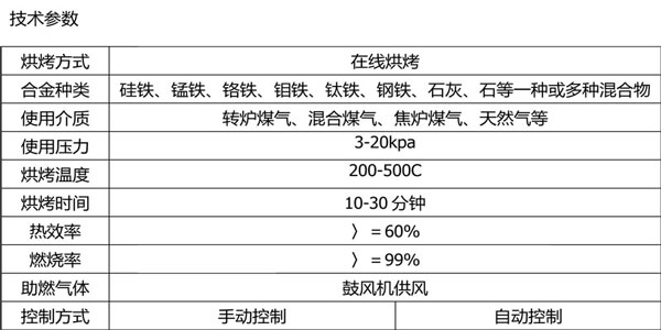 在線鐵合金烘烤爐是對鐵合金(硅鐵、錳鐵、鉻鐵、鉬鐵、鈦鐵、釩鐵、石灰、繭石等)混合合金進行干燥,脫水的專用設備,主要的作用是在爐前對混合好的合金進行快速烘烤和脫水,達到提高出鋼品質,節能等作用。在線鐵合金烘烤爐位于爐旁,有鋼結構支架支撐放置在基礎平臺上。由高位落料溜管向爐內加料或爐后又車向爐內加料,采用煤氣介質,通過燃燒系統,根據電爐出鋼時間可以在10-30分鐘內將混合合金烘烤至200--500℃,烘烤結束后,打開爐底出料閥,烘烤后的合金料經過下料口進入合金旋轉溜槽,加入鋼包內。同時產生的煙氣通過烘烤爐上方的除塵管排至轉爐二次除塵管內,達到安全、節能的作用。本機可實現手動/自動控制,在機旁設置有控制柜,通過控制柜的手動/自動轉換開關來切換手動和自動控制。